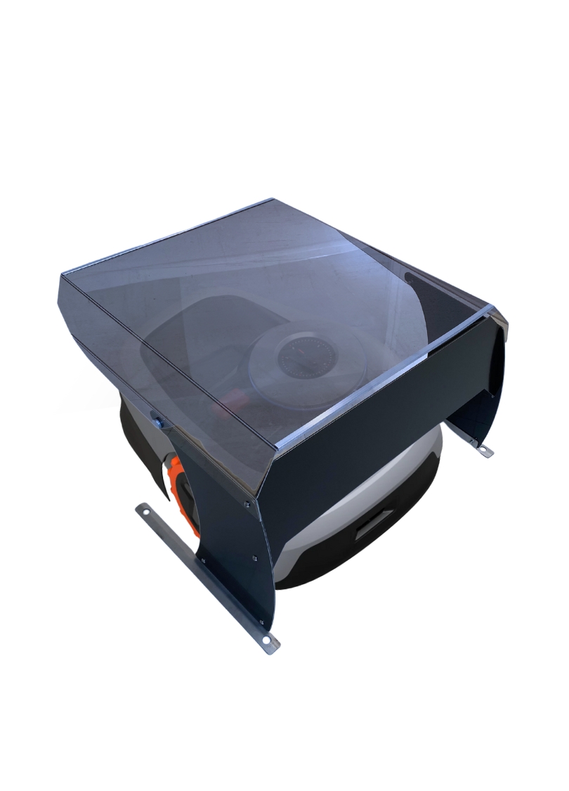Le toit s’ouvre et se ferme facilement grâce aux 2 vis moletées. En polycarbonate fumé anti-UV, il prévient contre la surchauffe de votre robot en plein soleil tout en laissant receptionner les ondes et information de la technologie RTK ou GPS.