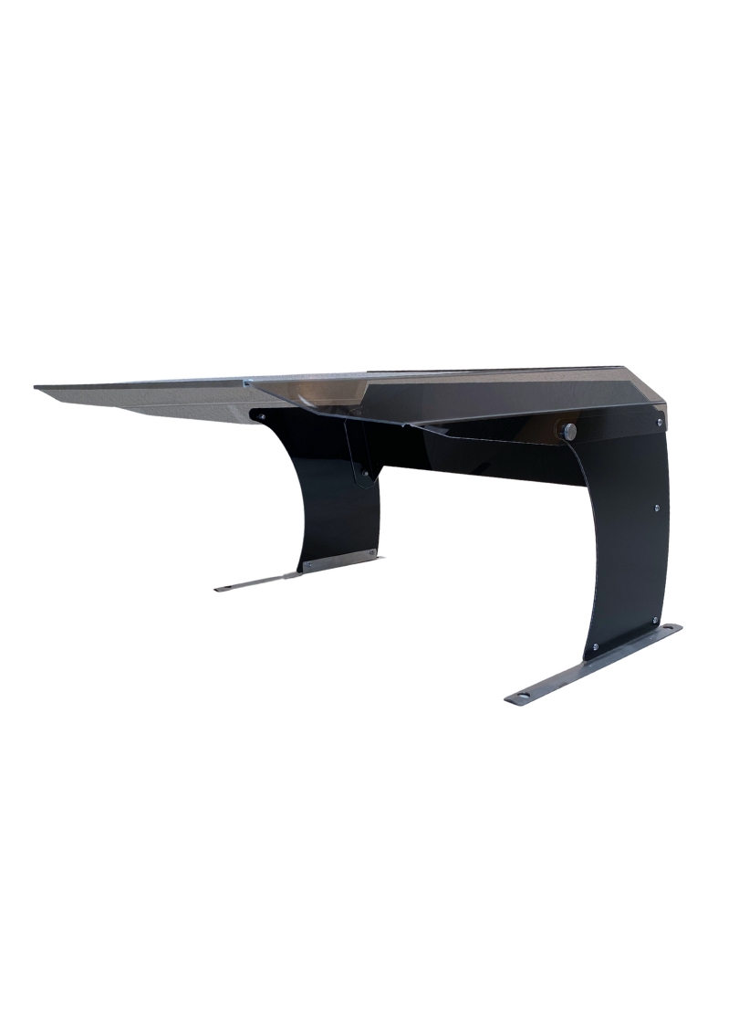 Ses pieds en acier inoxydable et panneaux composites à l'arrière garantissent robustesse, stabilité et résistance aux intempéries.
